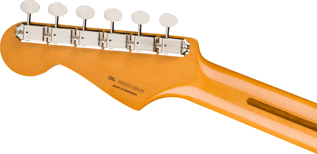 The Vintera® III Late '50s Stratocaster® features an alder body paired with a 1-piece maple neck and maple fingerboard, delivering that unmistakable Fender sound brimming with punch and crystal-clear articulation. The authentic late '50s “D”-shaped neck profile offers an instantly familiar playing experience that feels natural in your hands, while the 7.25" radius fingerboard with vintage-tall frets ensures supreme comfort and outstanding feel. At its heart, three meticulously crafted late '50s spec'd pickups capture the bright, singing tones that established Fender's reputation during this pivotal era. The vintage-style synchronized tremolo system provides effortless pitch manipulation, while period-correct vintage-style tuning machines deliver authentic looks with superior tuning precision.