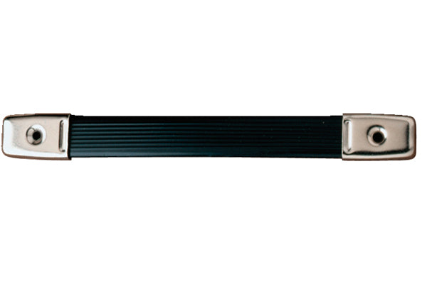 - Black or brown amplifier handle with vinyl sleeve over steel strap and one-screw mounting nickel-plated end caps