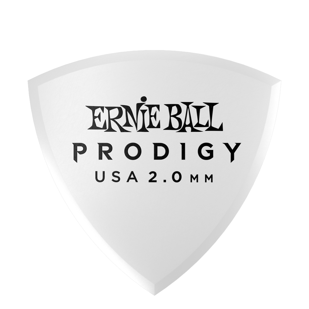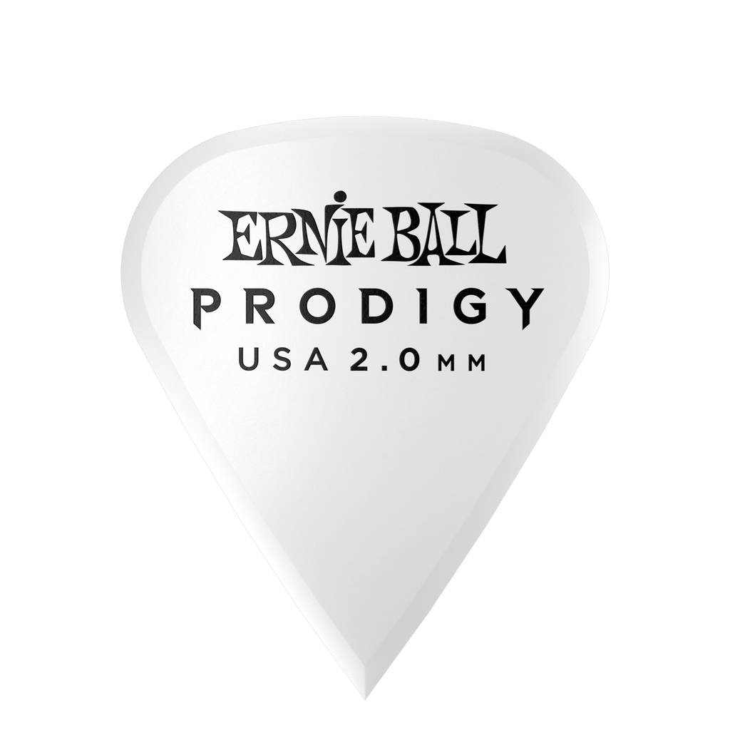 Ernie Ball Prodigy picks feature highly durable Delrin material for a more secure non-slip surface. The machined beveled edge and sharp point at bottom allow for less drag, added articulation, and precise control while playing.