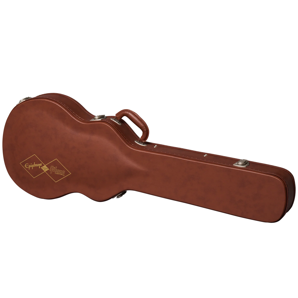 การทำสีแบบ Vintage Gloss ส่งผลให้กีตาร์มีรูปลักษณ์แบบวินเทจโดยไม่ดูเก่าจนเกินไป และเข้ากันได้อย่างลงตัวกับฮาร์ดแวร์นิกเกิล ซึ่งรวมถึงลูกบิด Epiphone Deluxe “Single Ring” Keystone กีตาร์รุ่นนี้ยังมาพร้อมกับกล่องเคสแข็งสีน้ำตาลพร้อมกราฟิก Inspired by Gibson Custom ซึ่งภายในบุด้วยกำมะหยี่สีชมพู