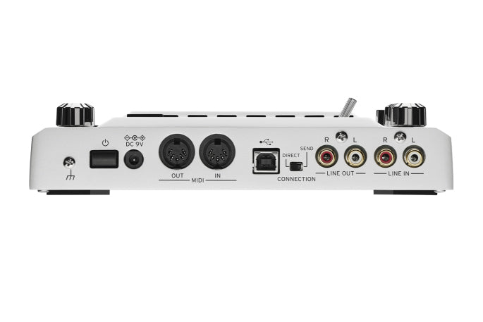 - OUTPUT L/R (pin jack), LINE IN L/R (pin jack), MIC/GUITAR IN (6.3mm TRS phone jack, balanced (for MIC) / 6.3mm TRS phone jack, unbalanced (for GUITAR)), (headphone) jack (6.3 mm stereo phone jack), MIDI IN/OUT, USB (Type B)