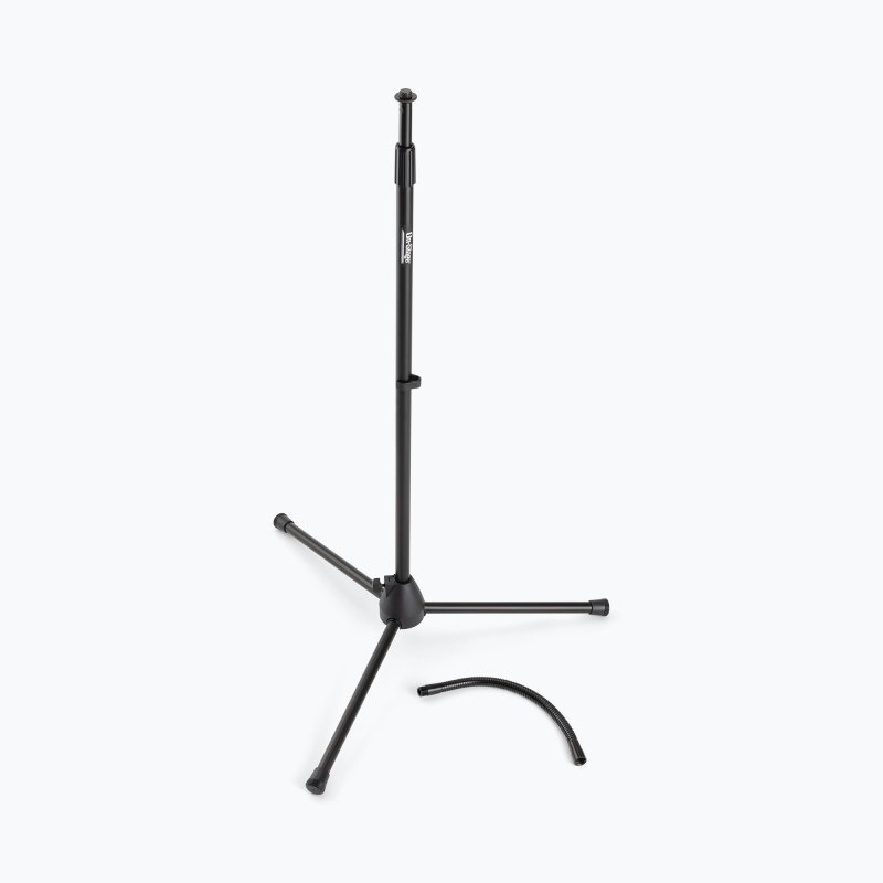 The MS7702B Mic Stand with Gooseneck delivers portable, reliable, adjustable support and precise placement for microphones. The wide-spread tripod base with rubber feet provides outstanding balance and stability for equipment, even on not-quite-flat surfaces. The flexible metal gooseneck, which is simply bent into position and holds itself in place, provides users with highly efficient mic placement and repositioning. The telescoping main shaft makes it easy to adjust the stand height from 32" to 61.5" for use in a variety of settings including recording studios and live-performance venues. For compact storage and efficient transportation, the upper shaft slides inside the lower shaft and the tripod-base legs fold down flat.